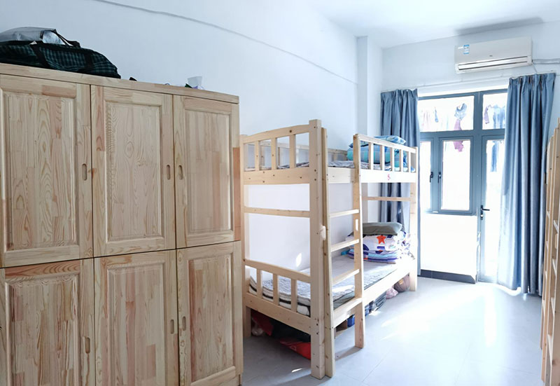 2.整潔的生活環(huán)境。學(xué)生公寓武賁閣與陽彩軒擁有現(xiàn)代化的生活設(shè)施。每間宿舍住4-6人,擁有雙套衛(wèi)浴系統(tǒng),配備獨立洗衣機、空調(diào)。采用全實木家具床柜,健康無污染。聘請專業(yè)生活老師,科學(xué)管理日常起居。